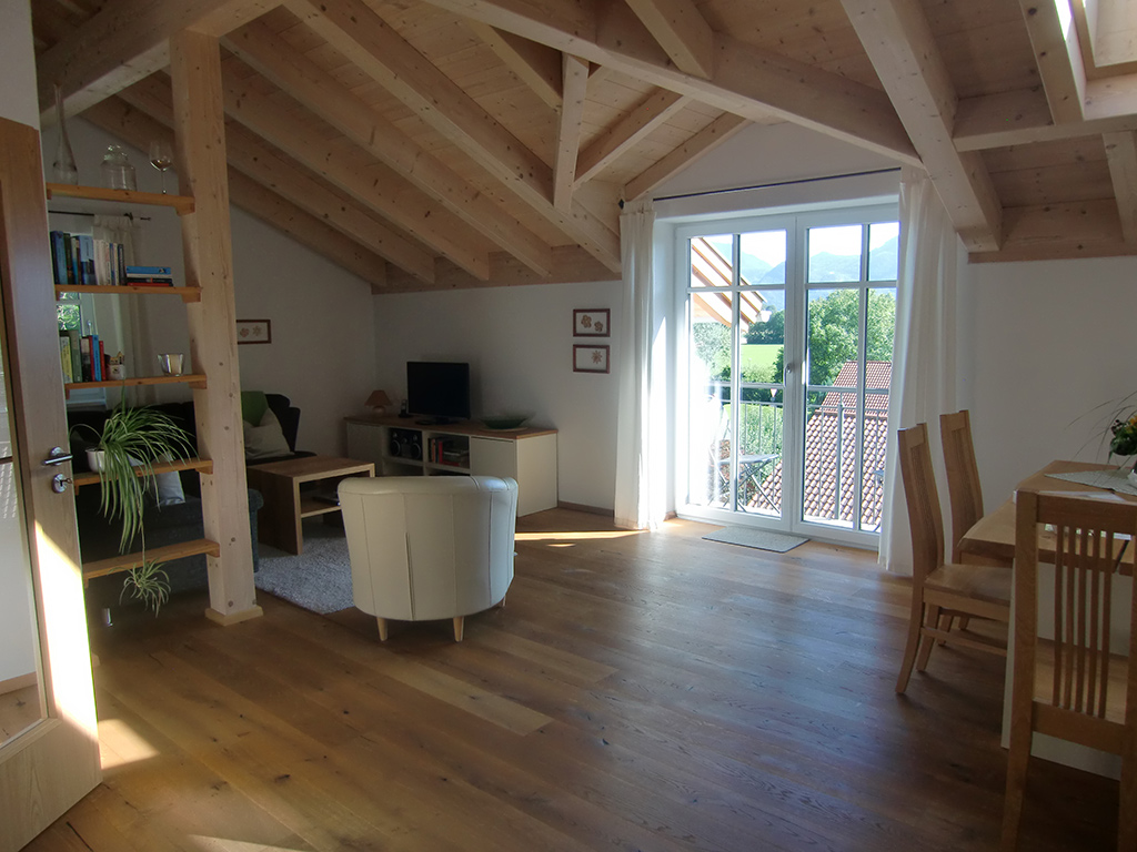 - Wohnzimmer mit Küchenzeile mit Parkettböden